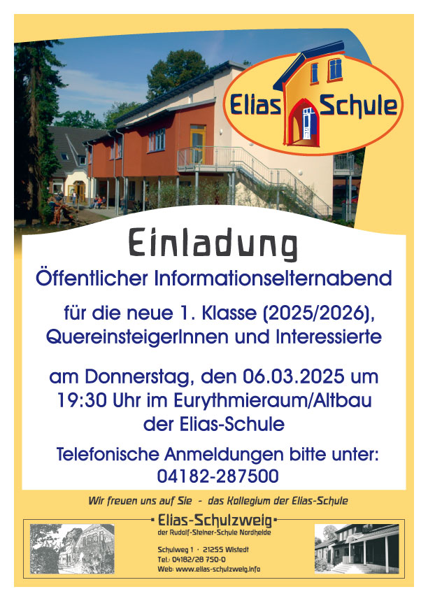 um 19:30 Uhr im Eurythmieraum/Altbau der Elias-Schule